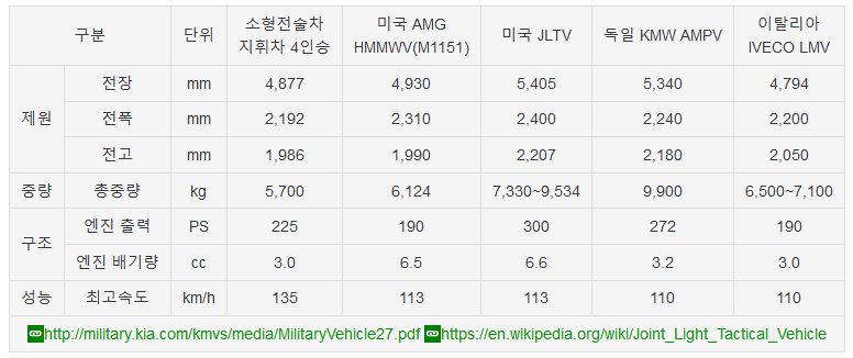 新型小型戦術車両は米軍の戦術車両であるハンヴィーとデザインが似ており、優秀な機動性能を備えて『韓国型ハンヴィー』と呼ばれている。軍の老朽化した指揮用車両である軍用レトナ(※起亜の小型SUV、K-131)とコランドスポーツ(※雙龍のSUV)を交替するために作られた。