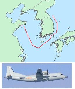 韓国軍合同参謀本部によると、中国軍機は済州島の北西からKADIZに進入し、江原道・江陵東方の上空まで北上後、KADIZを出た。中国軍機のKADIZ進入は今年で6回目となる。