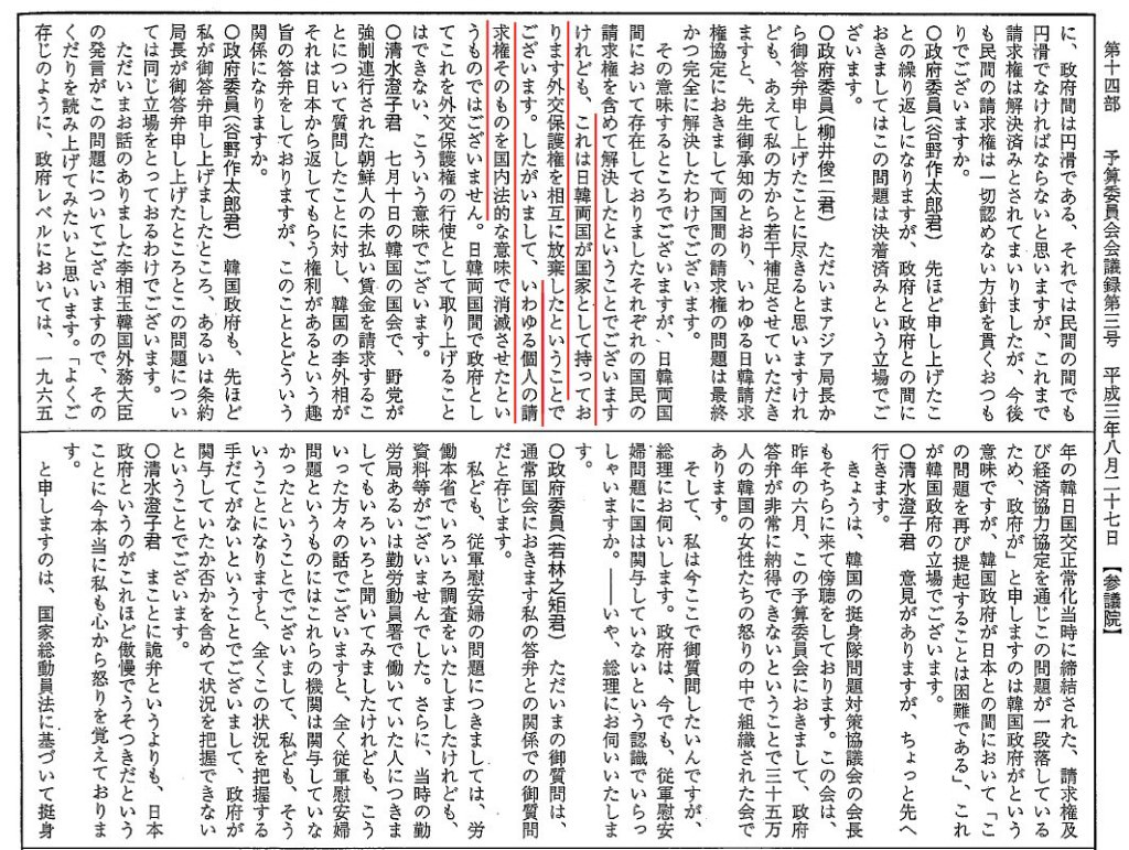 安倍総理も「最終的に解決した」とは言っても「個人請求権が消えている」とは言っていないはず。