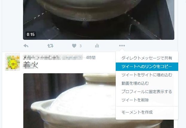Twitterの「その他」->「ツイートへのリンクをコピー」を選択します。>>100 補足(2)