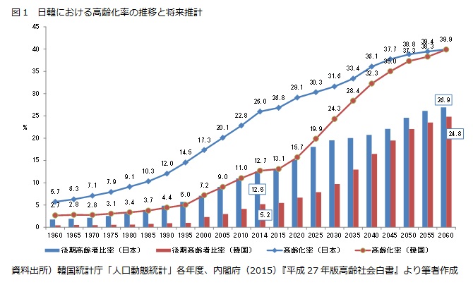 日韓比較(3):高齢化率 ―2060年における日韓の高齢化率は両国共に39.9%―