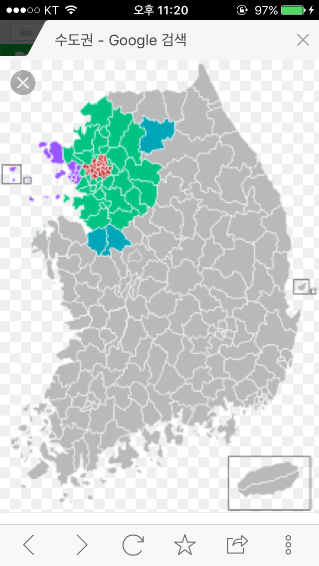 韓国は北海道とほぼ同じ面積だそうだから、そう考えると赤色の部分に1000万人って凄いな