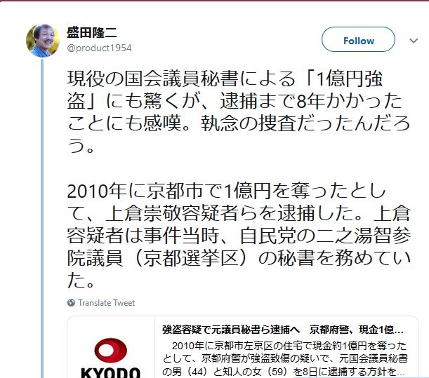 1億円強盗致傷、元国会議員秘書逮捕へ