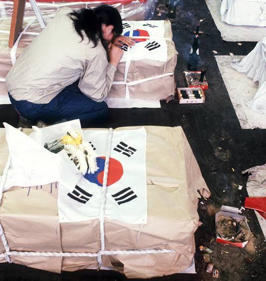 光州事件は、1980年、全羅南道光州で起きた大規模な民主化闘争です。独裁体制に抗議した学生たちのデモを軍部が弾圧、怒りが爆発的に広まって二十万人の市民がデモに参加し、武装した市民たちが道庁を占拠しました。最終的に政府の手によって鎮圧されましたが、市民・軍人に240人の死者が出て、409人が行方不明となったのです。