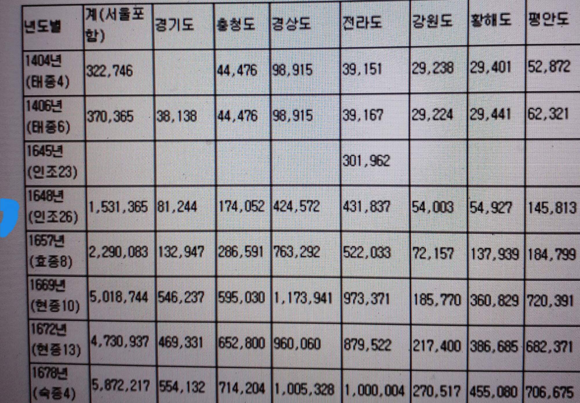 突然1648年には韓半島の人口が150万人になる