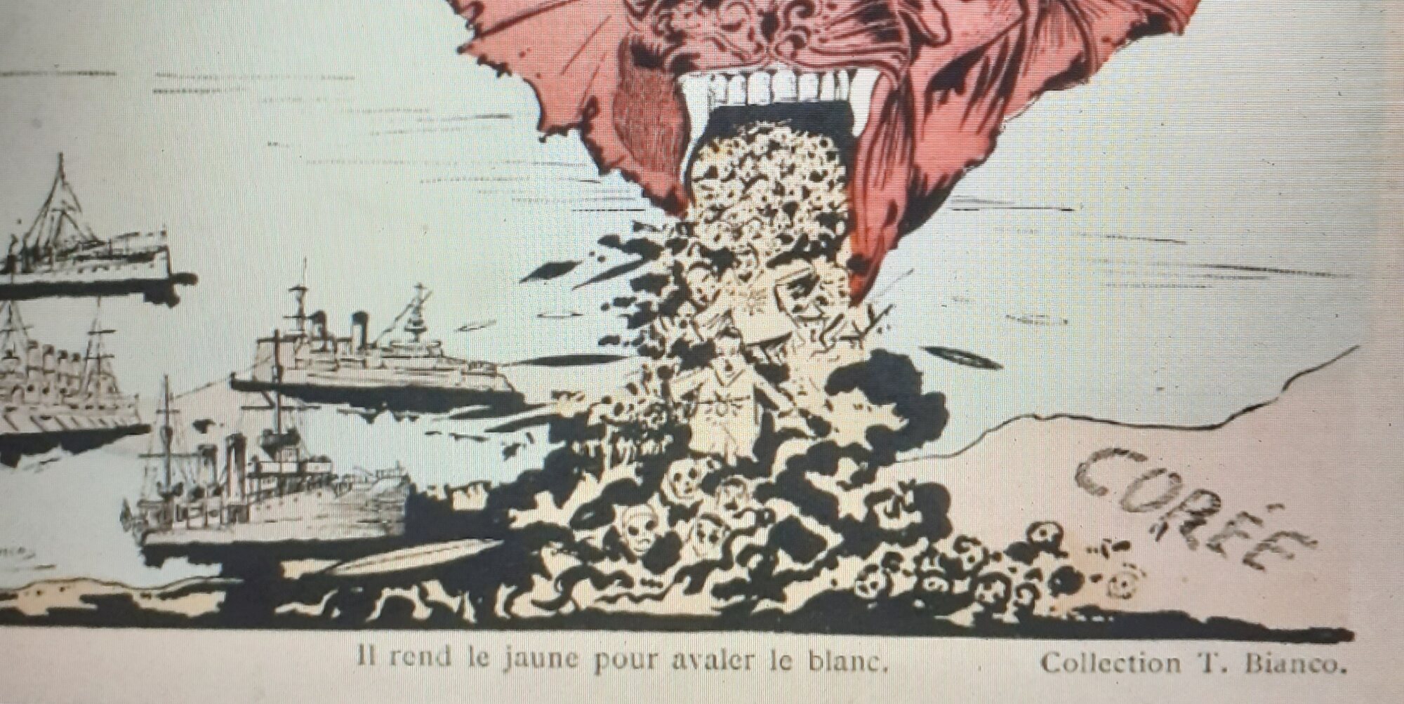 この怪物は「白いものを飲み込むために黄色を吐く」(Il rendle jaune pour avaler le blanc)