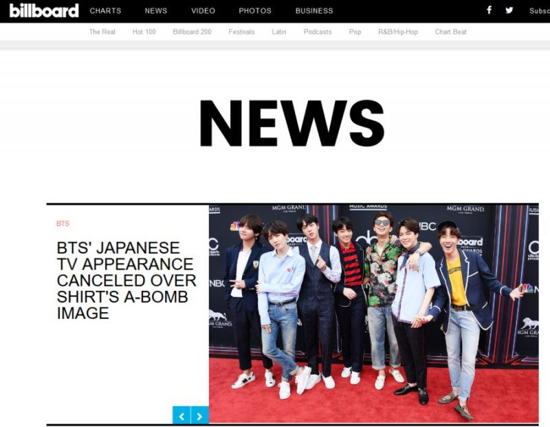 빌보드 기사 주소https://www.billboard.com/articles/news/bts/8484102/bts-japan-tv-appearance-canceled-shirt-abomb-image