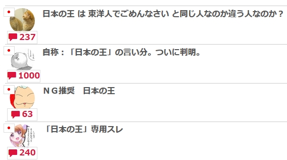 ここではあんまり効果ないけどね。>>350 日本の王は簡単に誘導に引っかかる知能指数の極めて低い只の 俺は人とは違うんだ っていうナルシスト野郎で結論出ました。