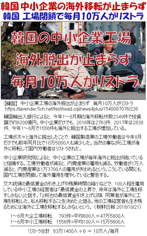 http://www.yonhapnews.co.kr/economy/2018/11/09/0301000000AKR20181109153900002.HTMLこうして、韓国国内の内需や購買力は低下するが、輸出で儲ける企業だけが儲かる。