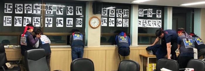 労組はまた、今年1月韓国GMが協力会社との請負契約を終えて仕事を失った64人を復職させてもらっても要求した。今年に入って、民主労総が雇用部庁舎を占拠したのは四回目だ。先に現代・起亜車非正規職労組は「不法派遣問題の解決」などを要求して雇用部ソウル庁を占拠した。民主労総大邱本部は雇用部大邱庁長を「積弊」と指摘して辞退・拘束などを要求し、大邱庁を占拠した。最近では、韓国のジョブワールド非正規職労組が「直接雇用正規職化」を要求して雇用部試合支庁を占拠した。雇用部は「ソウル庁を占拠座り込みした現代・起亜車非正規職労組の法的措置を進めており、残りの部分についても告訴・告発するかどうかを検討中」とした。