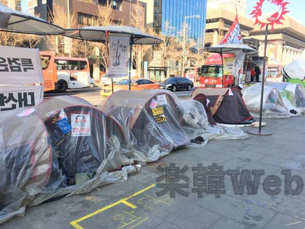 道路でテントを張って慰安婦像を守ったり、セウォル号被害者家族が出張してテント生活をしたり・・・、
