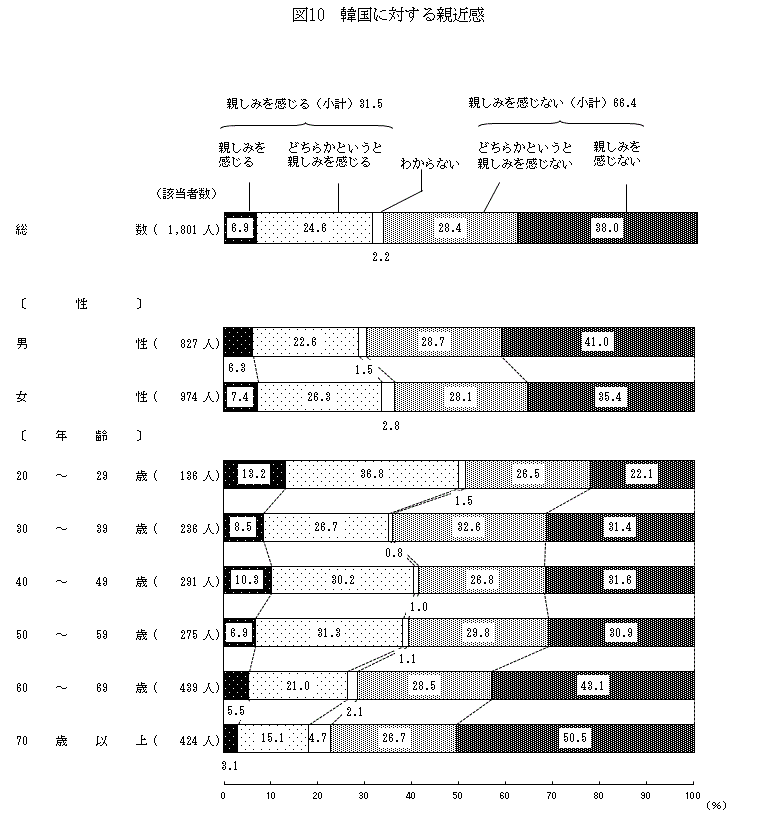 世論調査では、日本人女性の63.5%が親しみを感じていない。