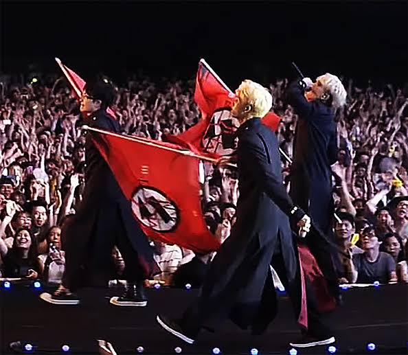 BTSはさらに、コンサートの舞台でナチスのかぎ十字に酷似した印の旗を掲げたこともあるという。