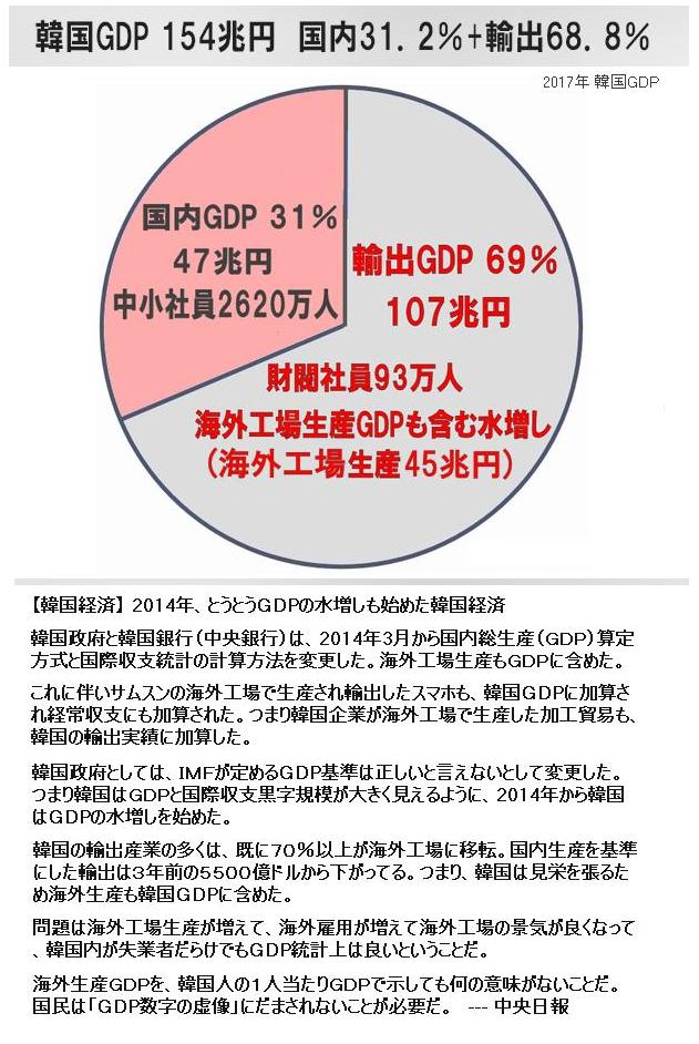 国内の生産は減少して、韓国内の雇用も減少しているのに、GDPだけは増加するしいう状況。