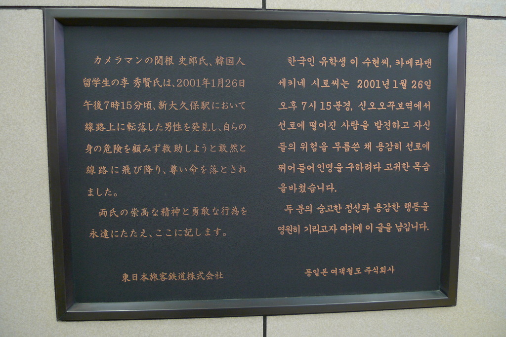 この事故で、この韓国人と一緒に助けようとして、亡くなった日本人がいたことを