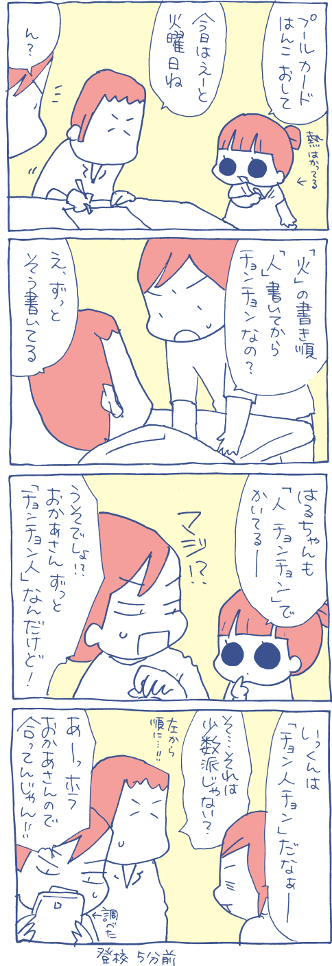 チョンチョン、チョ~ンチョ~ンかな漢字は書き順は意味をなぞりながら覚えたな(´・ω・`)