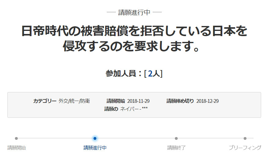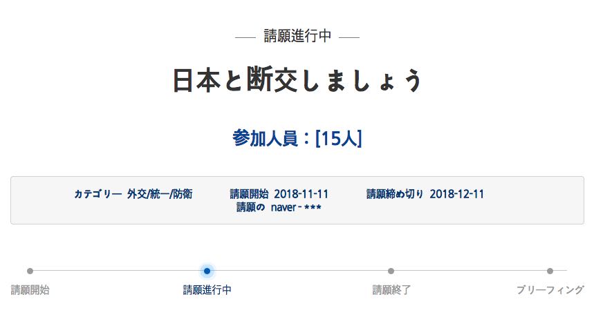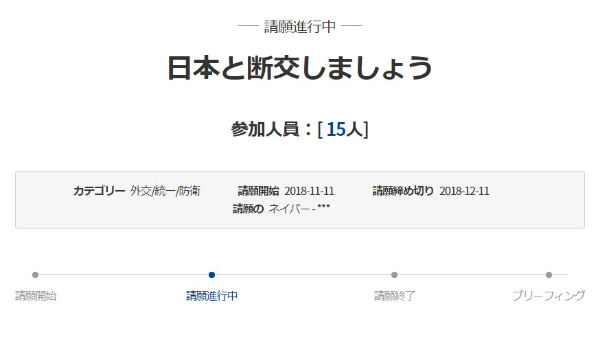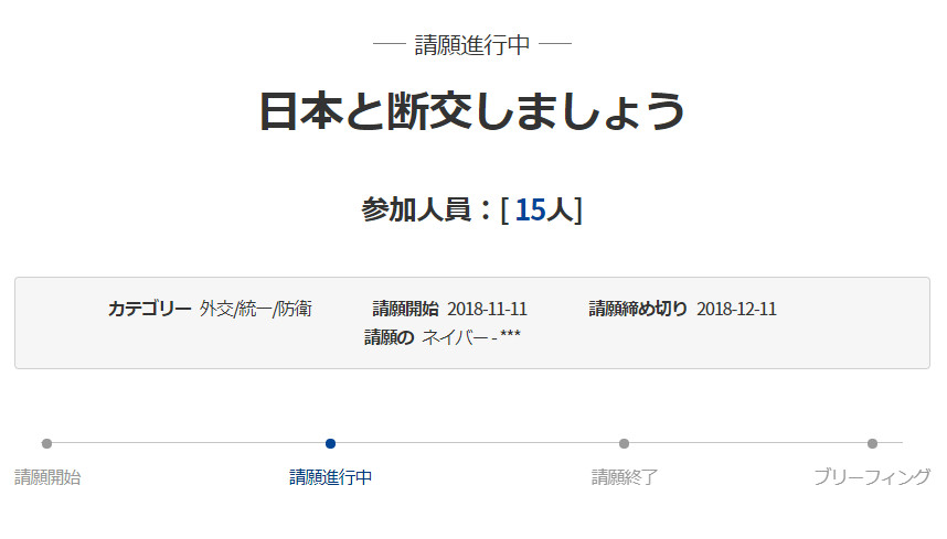 「国交断絶」の請願は韓国からは閲覧できないのかも・・・。どうか日本と戦争してください。WWWW