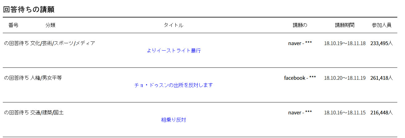他の請願もとてつもなく馬鹿げていておもしろいんだけど・・・。まだ15人とか、ポチらない韓国人は皆親日罪で逮捕だろ
