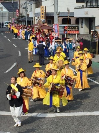 江戸時代に朝鮮王朝から来日した外交使節団を再現する「朝鮮通信使行列」が6日、瀬戸内市牛窓町地区であり、日韓両国の約200人が華やかな衣装で練り歩いた。