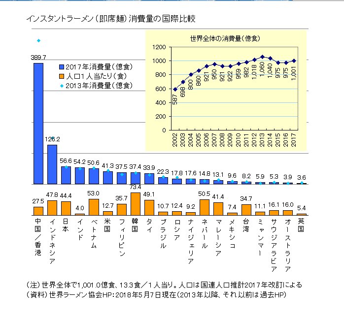 グラフの出典 生データは世界インスタントラーメン協会(WINA)