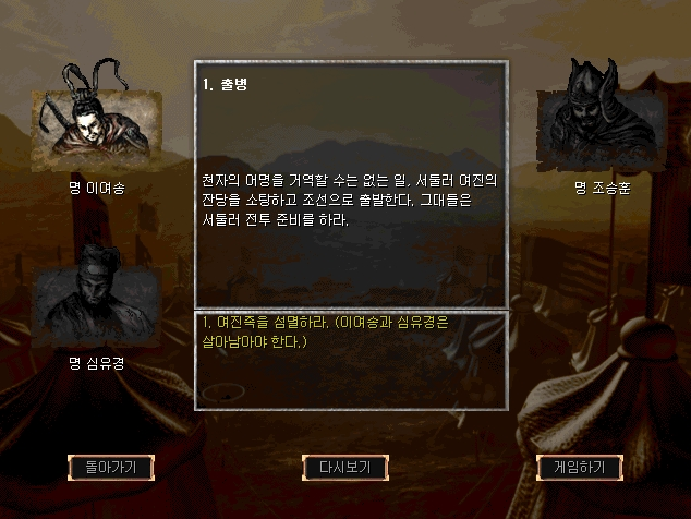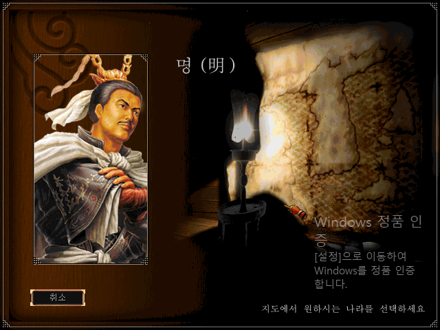 명나라를 선택했을때 화면과 음악.