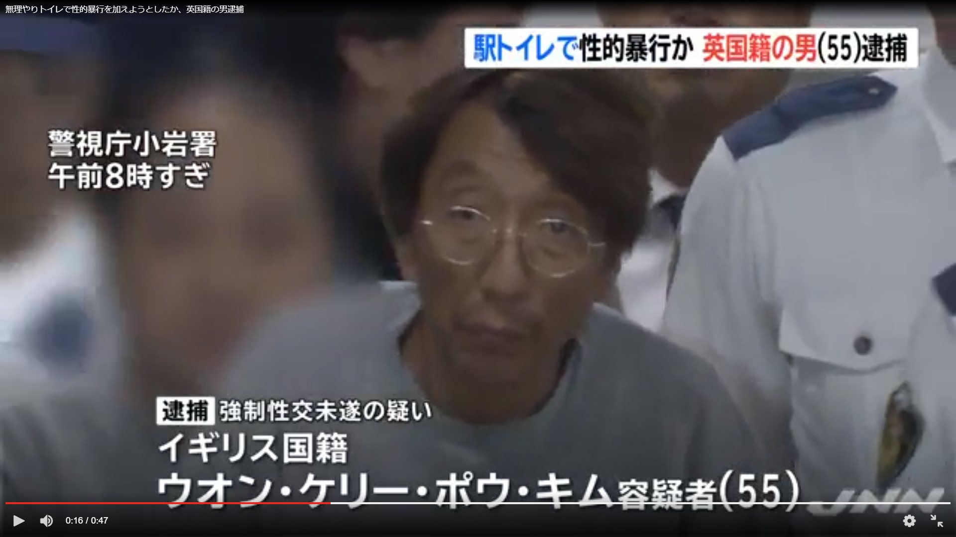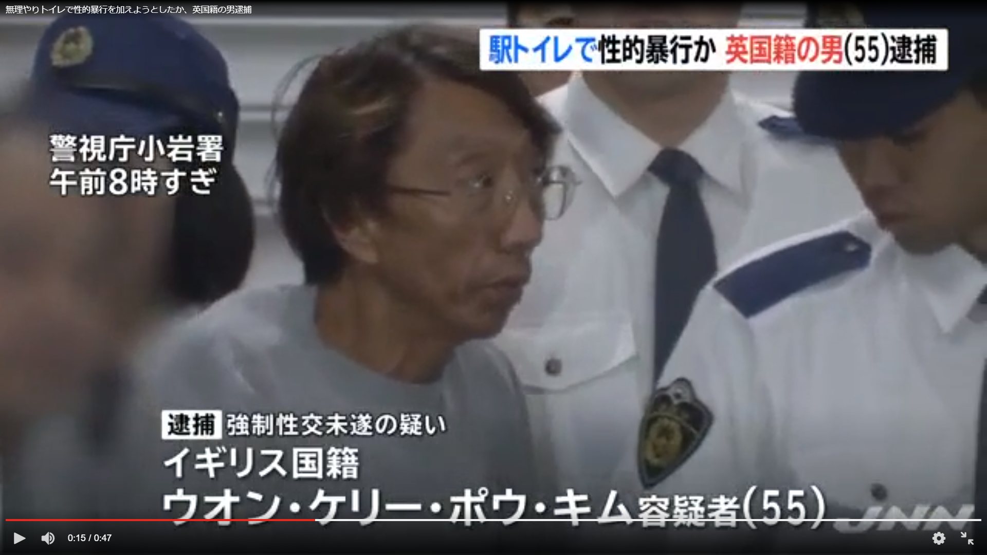 逮捕されたのはイギリス国籍のウオン・ケリー・ポウ・キム容疑者。警視庁によると、ウオン容疑者は今年8月、JR総武線小岩駅のトイレで、20代の女性を床に押し倒すなどして性的暴行を加えようとした疑いがもたれている。