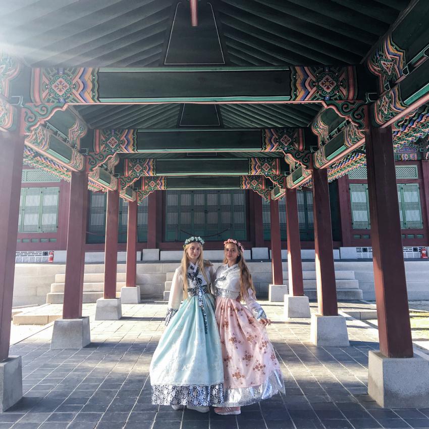 現代韓国での「民族衣装韓服の3大美」は、袖の曲線、白地の半襟、襟を合わせて着る形だそうです