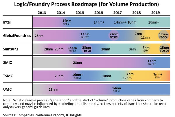 2018年に入り、ロジック半導体メーカーおよびファウンドリーメーカーのプロセス微細化競争が、いよいよ10nmから7nm、そしてその先の5nmへと急速に進もうとしている。