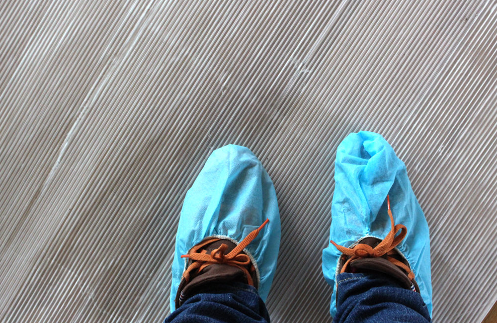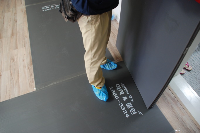 ( 신발 상태에서, 신발 위에 오염방지용 1회용 덧신 착용 )