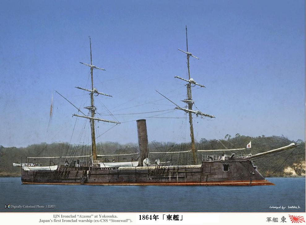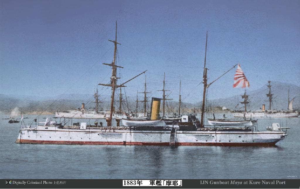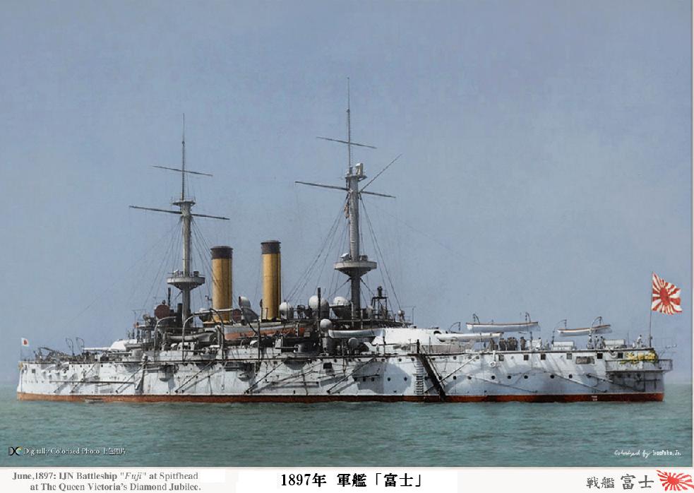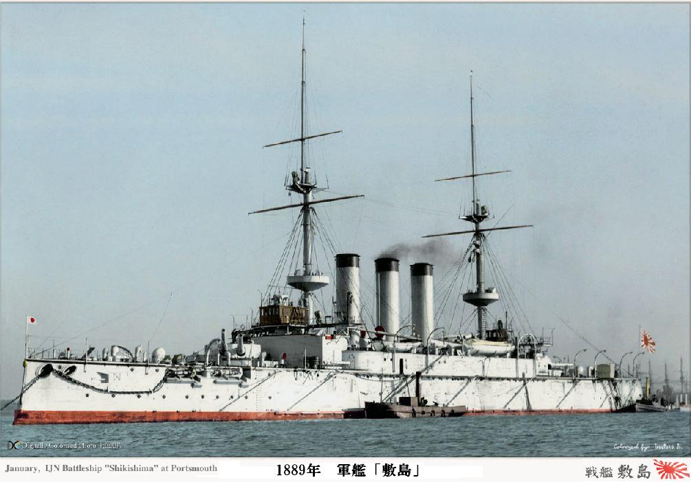 日本海軍の歴史・・・ 大型軍艦 1899年「敷島」 デジタルカラー化した写真