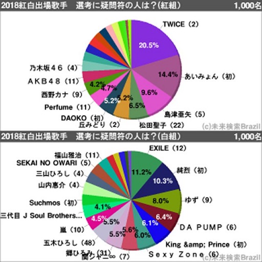 恒例「2018紅白出場歌手 選考に疑問符の人は?」1000人アンケート