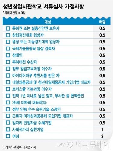 청년창업사관학교 서류심사 가산점.