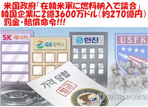 米国政府「在韓米軍への燃料納入で談合」 韓国企業に2億3600万ドル(270億円)の罰金・賠償命令 2018/11/15