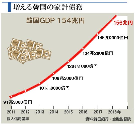 韓国は先進国では唯一と言っていい、国民が借金して経済を発展させるという特異なモデルの国で
