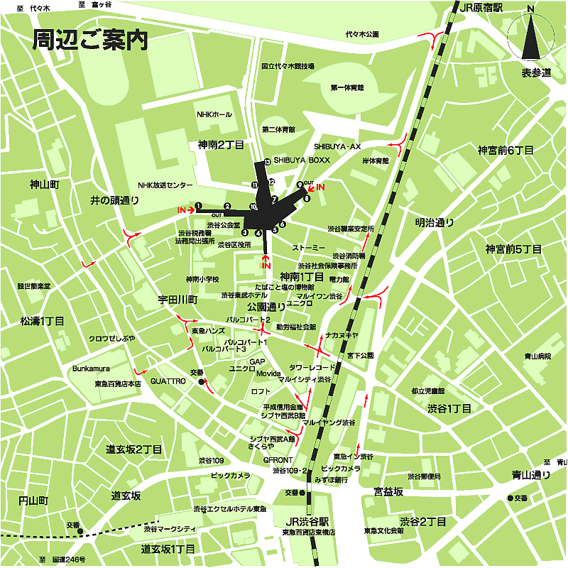 渋谷区役所、NHK 放送センター、国立代々木競技場の間の地下にある