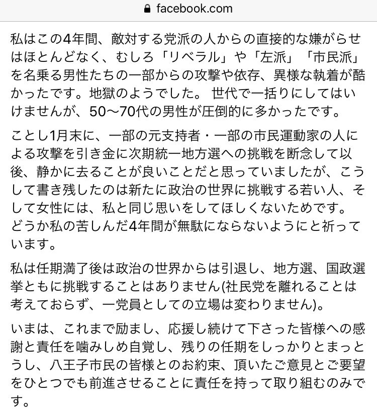 それをしないで議員辞める上に、日本特有のー!男性ガー!と騒ぐなら、