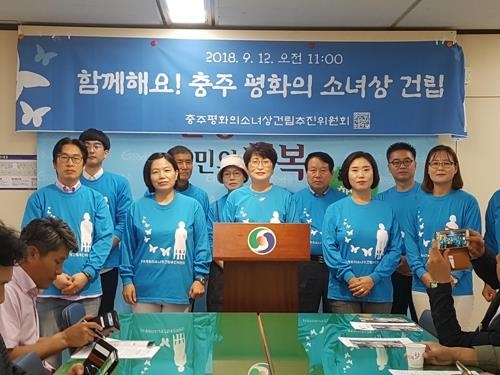 韓国中部の忠州市の市民団体「忠州平和の少女像建立推進委員会」は27日、ソウルの日本大使館前に設置された旧日本軍の慰安婦被害者を象徴する「平和の少女像」を製作した彫刻家夫妻のキム・ソギョンさん、キム・ウンソンさんと業務協約を結んだと明らかにした。団体は日本による植民地時代に起きた「三・一独立運動」から100年となる来年3月1日、市内の世界武術公園に少女像を建てる方針だ。