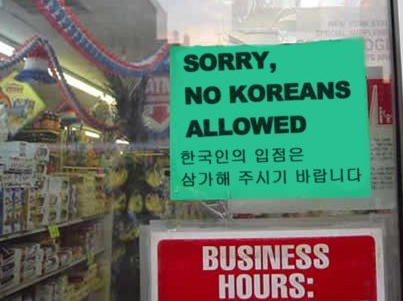 ↑日本で『韓国人出入り禁止』と張り紙をしたら差別だと大騒ぎするだろう