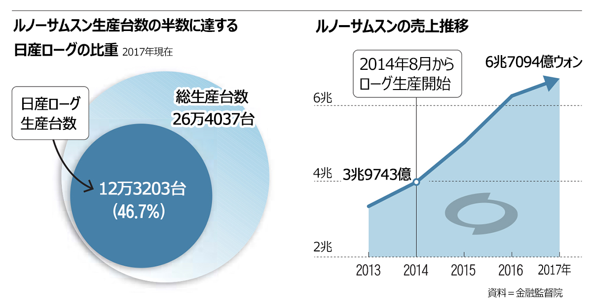 ルノーサムスン関係者は11月30日、「本社と協議の末、釜山工場の日産ローグ生産を2019年9月に中止することにした。残り10カ月間で日産ローグに代わる生産台数を確保するため、交渉を続けていく」と語った。しかし、新規台数を割り当ててもらっても、車種が変われば生産ラインの整備が必要なため、数カ月間は工場稼働に支障が出る可能性が高い。