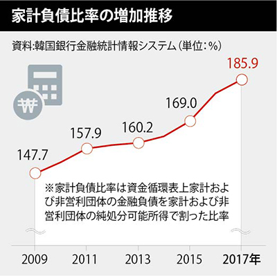 >韓国の家計の負債は1468兆ウォン(約147兆円)