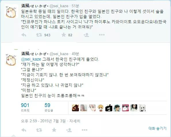 '저 일본인이 하는 이야기 어떻게 생각하냐 ~nya'