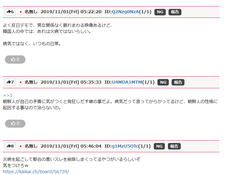 353名無し2019/11/01(Fri) 08:27:48ID:MyNzkwMQ=(1/1)NG報告火病スレが削除されました>>351のマルチレスが消された約2時間後にスレが消された訳だから明らかに誰かに忖度して削除してるね3