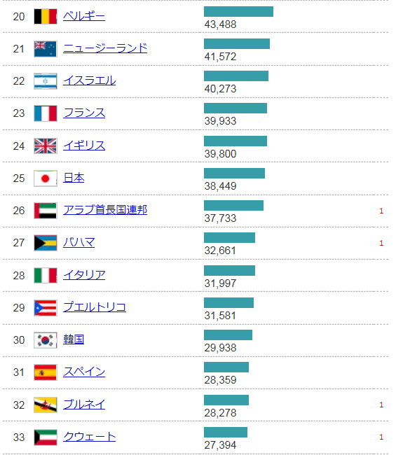 世界の1人当たり名目GDP 国別ランキング・推移(IMF)