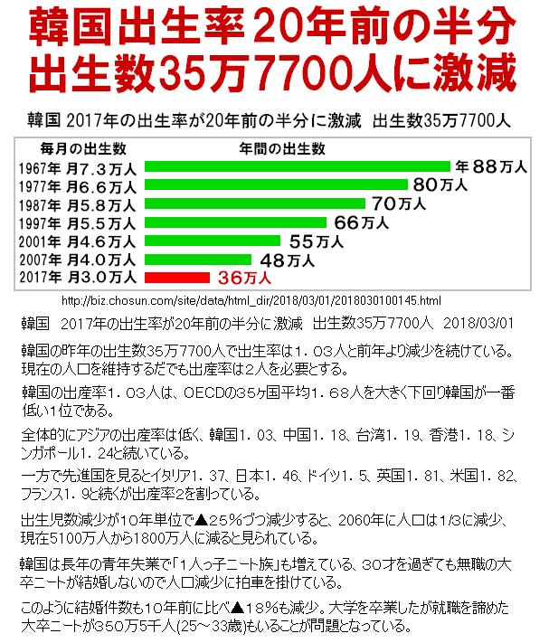 그래서 한국 뉴스에서는 매일 출산율 관련 뉴스가 나온다.現在も先にも希望が無いから、子供を作らないんだろうな。