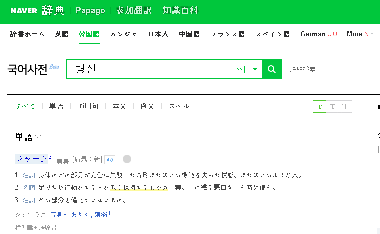 한국의 포털 사전은 어떻게 찾았는가? 재일인가?!>>35