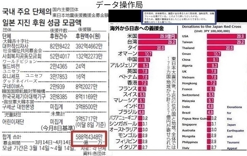 성금 1,000억을 일본에 기부해도 일본은 성금 리스트에서 한국을 빼고 갑자기 엄청나게 욕하고 몰아붙이기 시작한다.