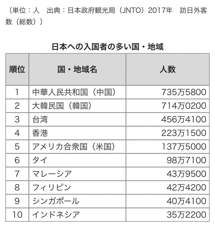 油の中(大韓民国)で楽しんで下さい。韓国人は2017年訪日外国人TOP20で2位