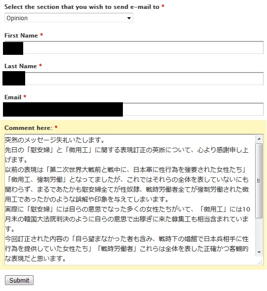 内容に文句つけようがないから、権力に屈したと突っついてみたら大事にされて逆にジャパンタイムズの立場が周知された形か朝鮮売春婦に金を与えて申し訳ありません