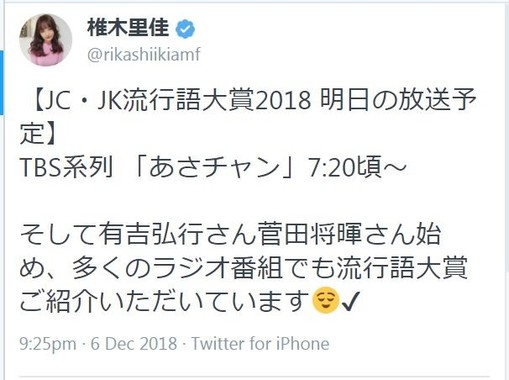 2018年12月5日、夜景を背にした自身の写真とともに、