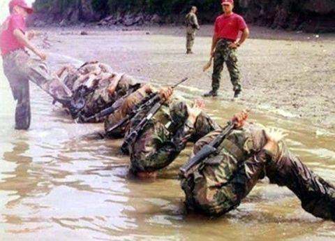 韓国軍、海を渡れず、溺れしぬ。